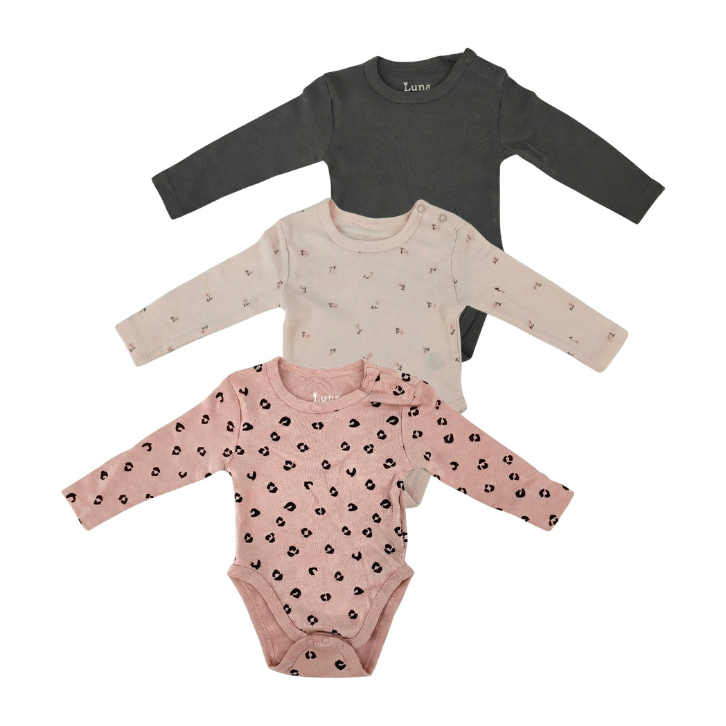 מארז שלישיית בגדי גוף אינטרלוק בגוונים שונים לתינוקת