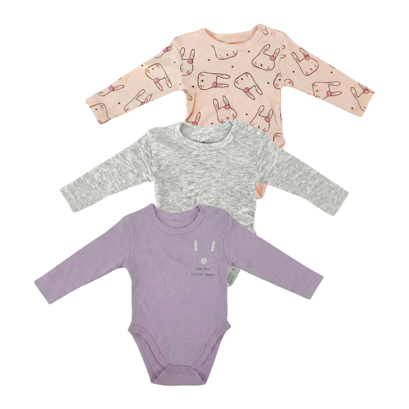מארז שלישיית בגדי גוף אינטרלוק בגוונים שונים לתינוקת