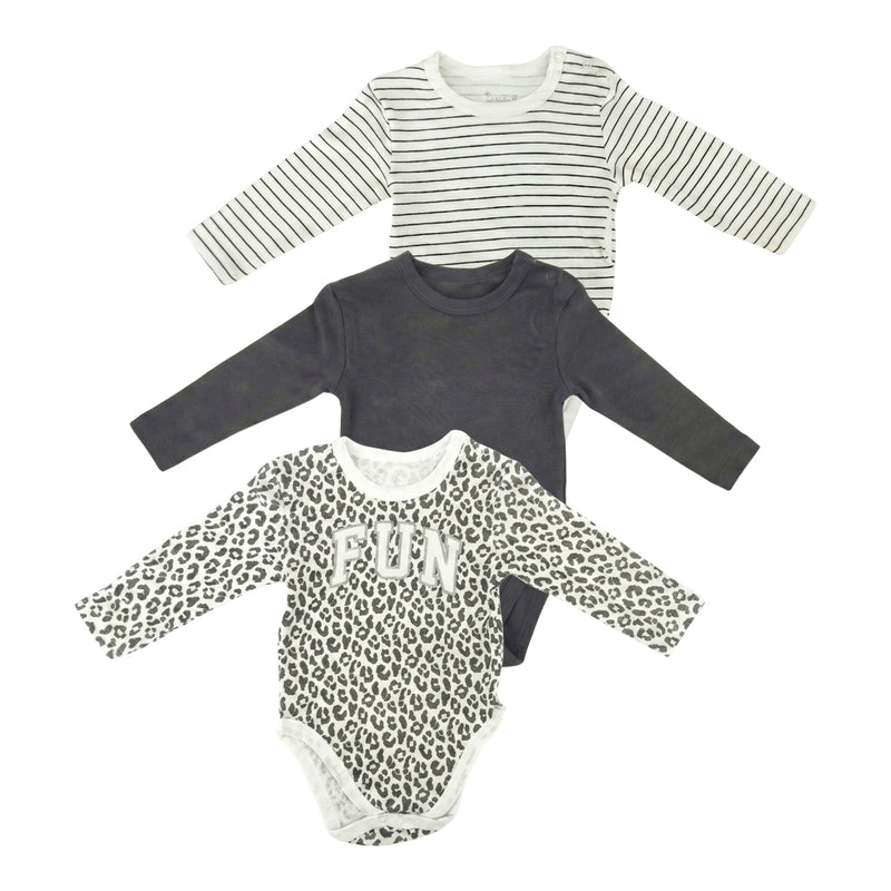 מארז שלישיית בגדי גוף אינטרלוק בגוונים שונים לתינוקת