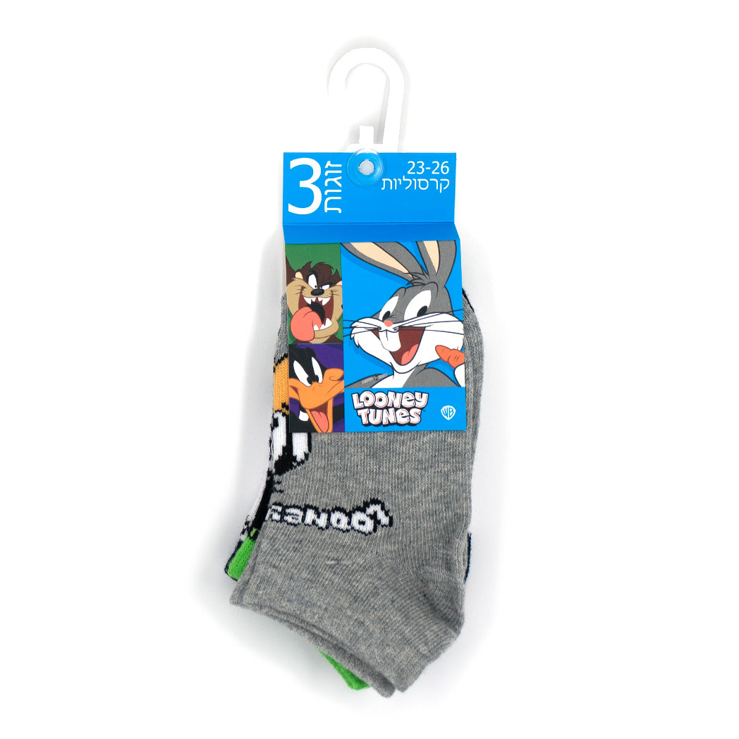 שלישיית זוגות גרביים קרסוליות לילדים בהדפסים משתנים של דמויות Looney Tunes