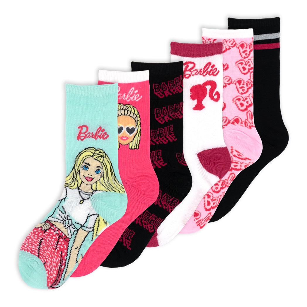 שישיית זוגות גרבי בנות בגובה רגיל עם הדפסי ברבי