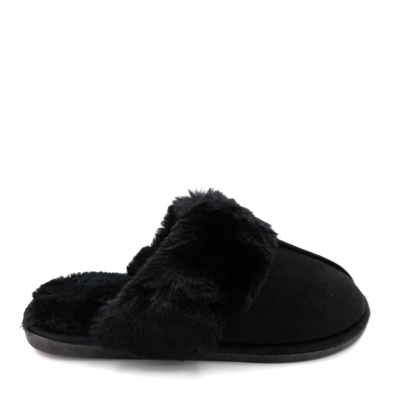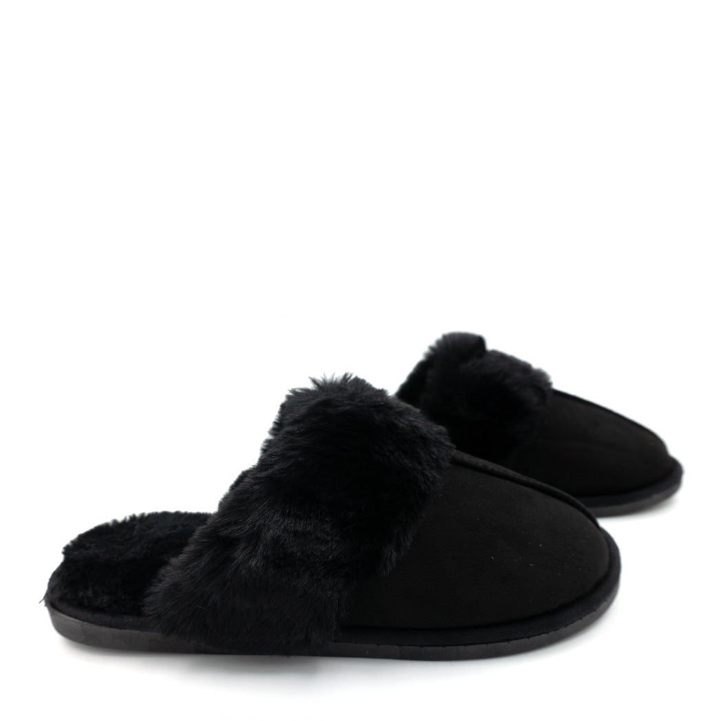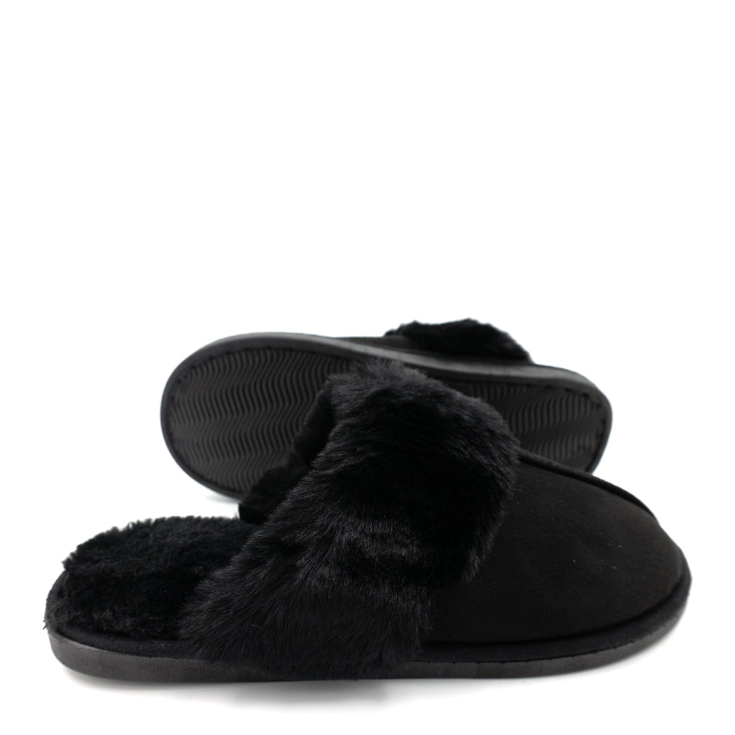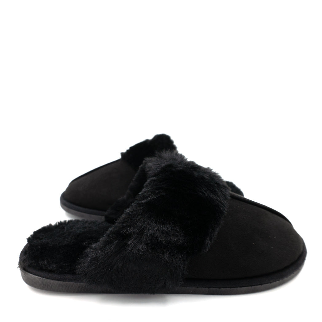 נעלי בית כפכף פתוח שחור עם פרווה מפנקת לנשים