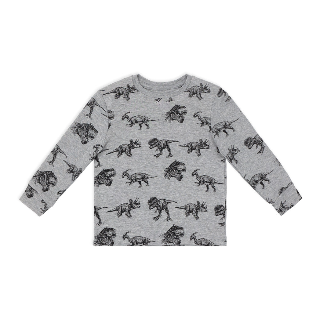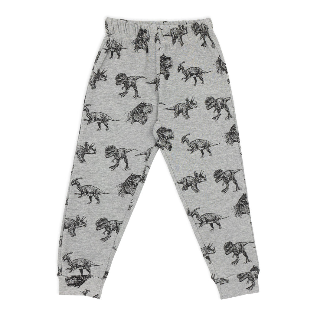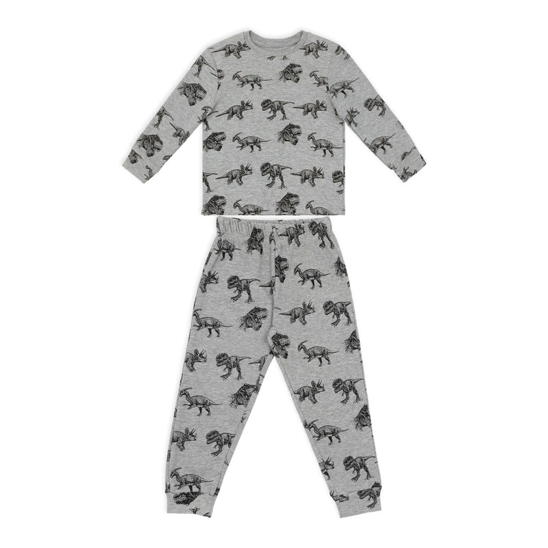 פיג'מה אינטרלוק דקה בצבע אפור-מלאנז' עם הדפסי דינוזאורים אולאובר