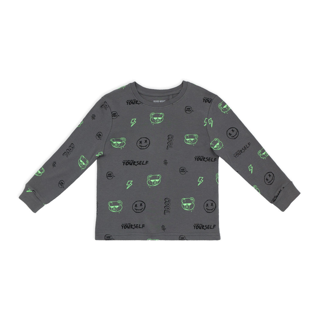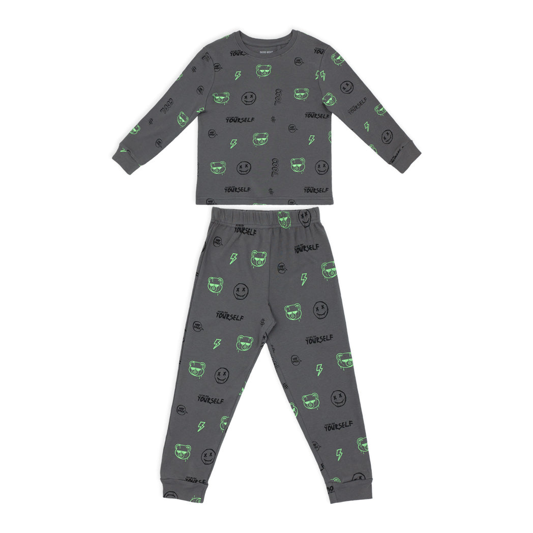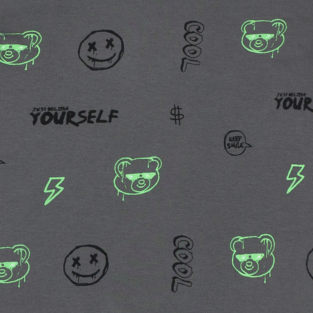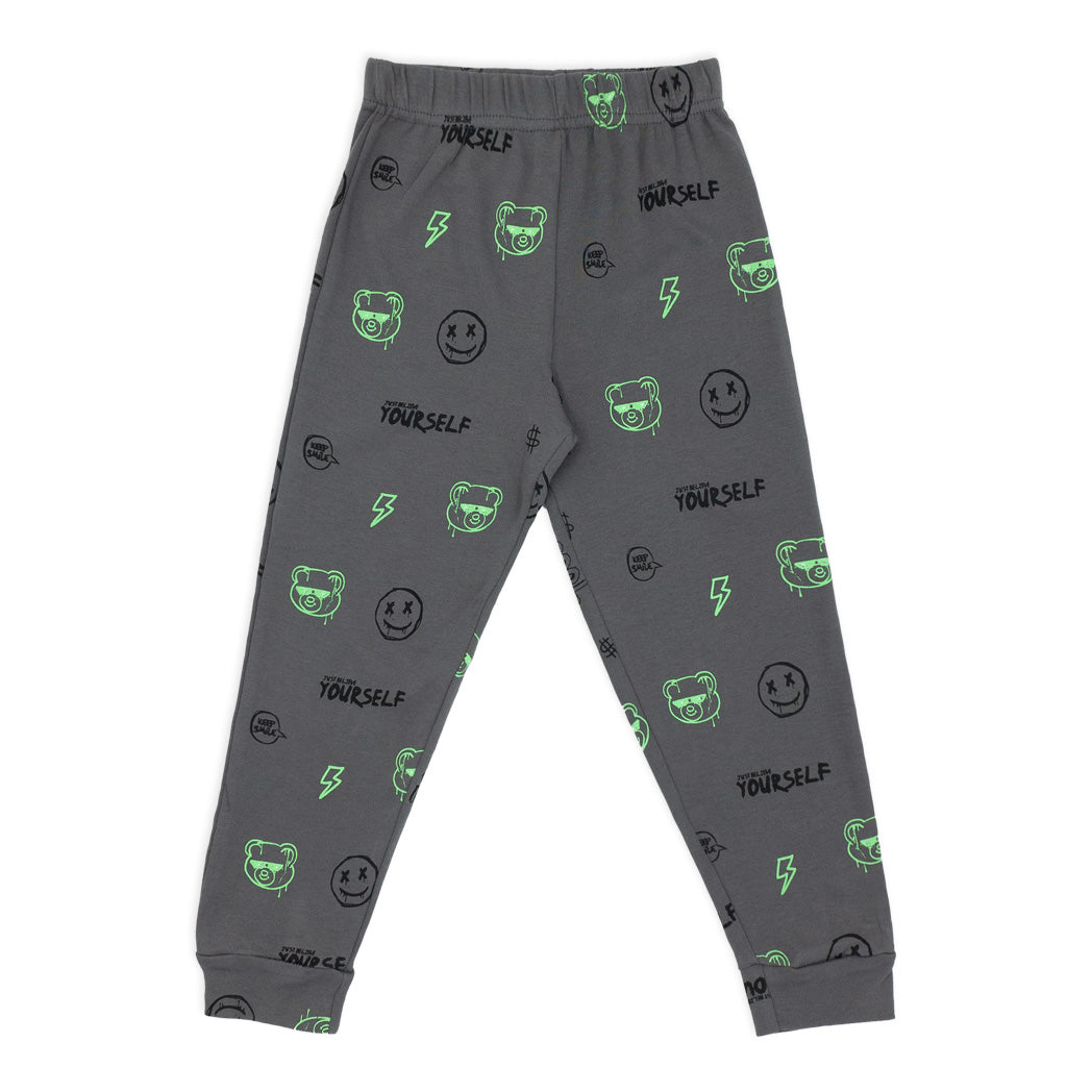 פיג'מה אינטרלוק דקה בגוון אפור עם הדפס אולאובר
