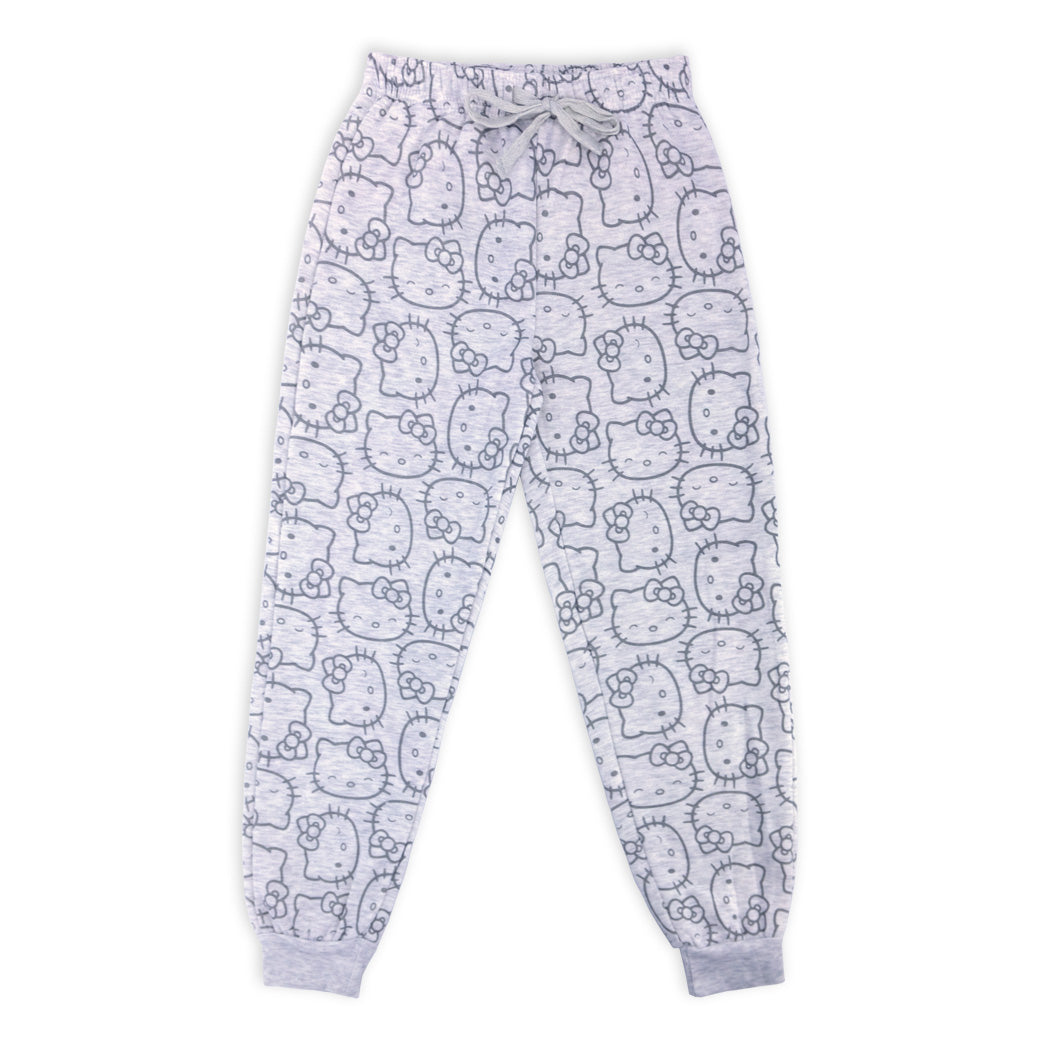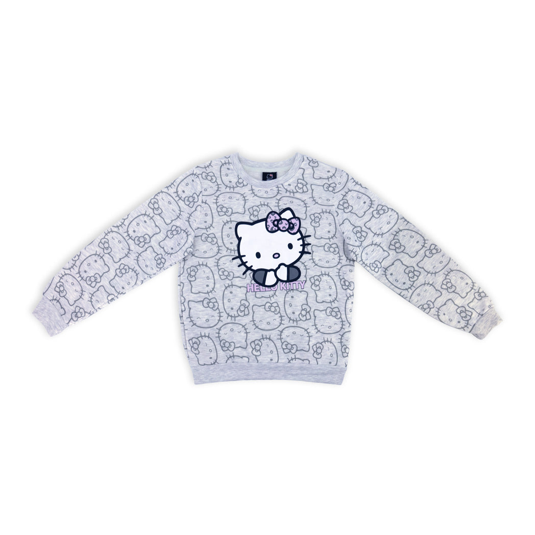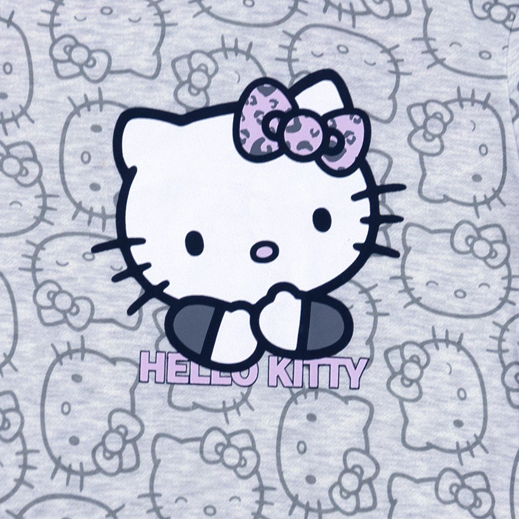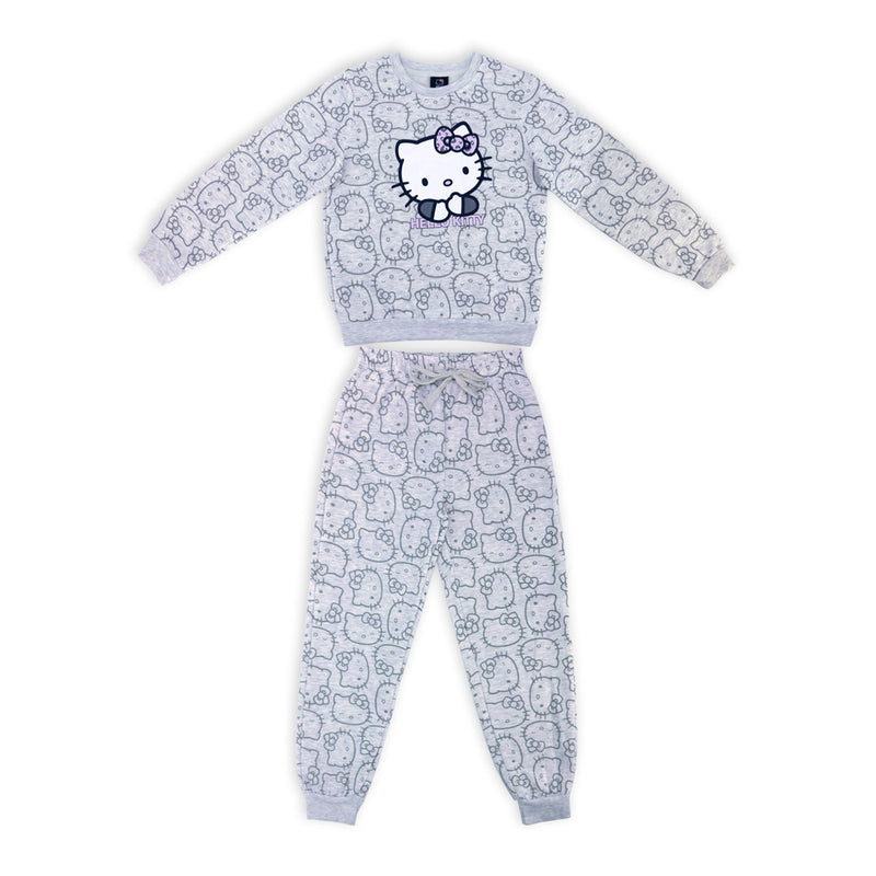פיג'מת פוטר עבה לבנות ונערות עם הדפס Hello Kitty אולאובר בגוון אפור