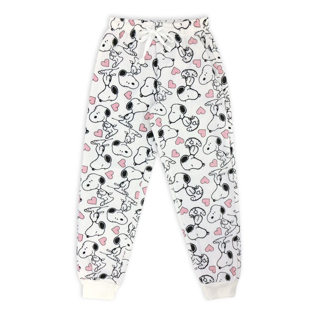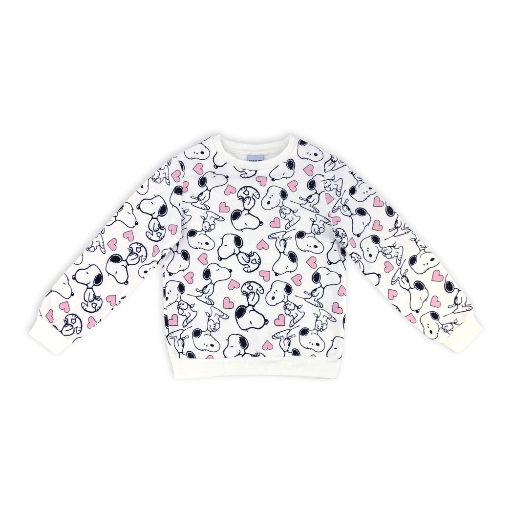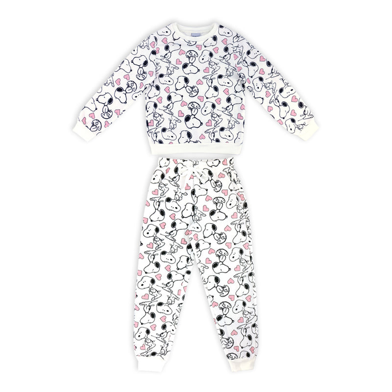 פיג'מת פוטר עבה לבנות ונערות עם הדפס Peanuts אולאובר בגוון קרם