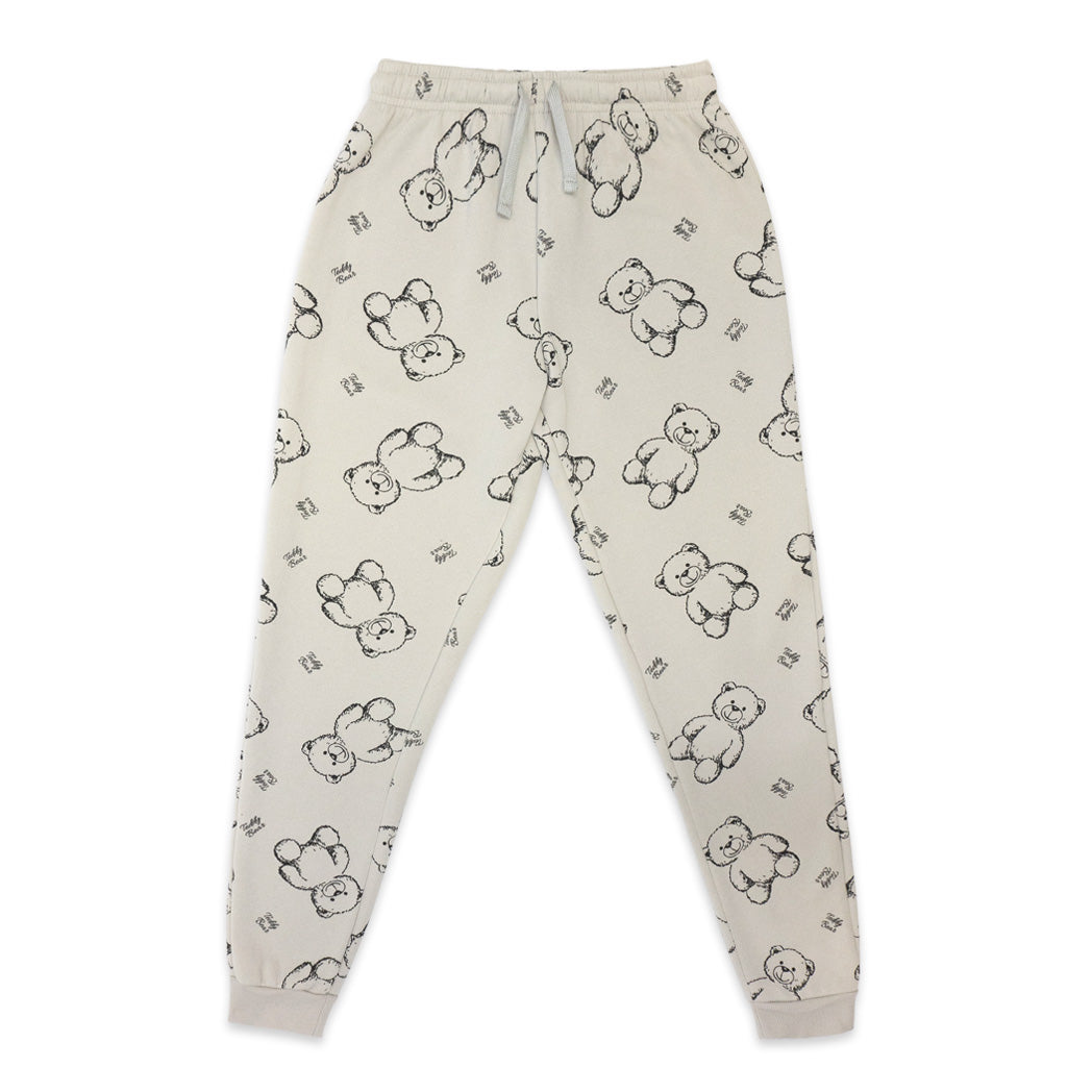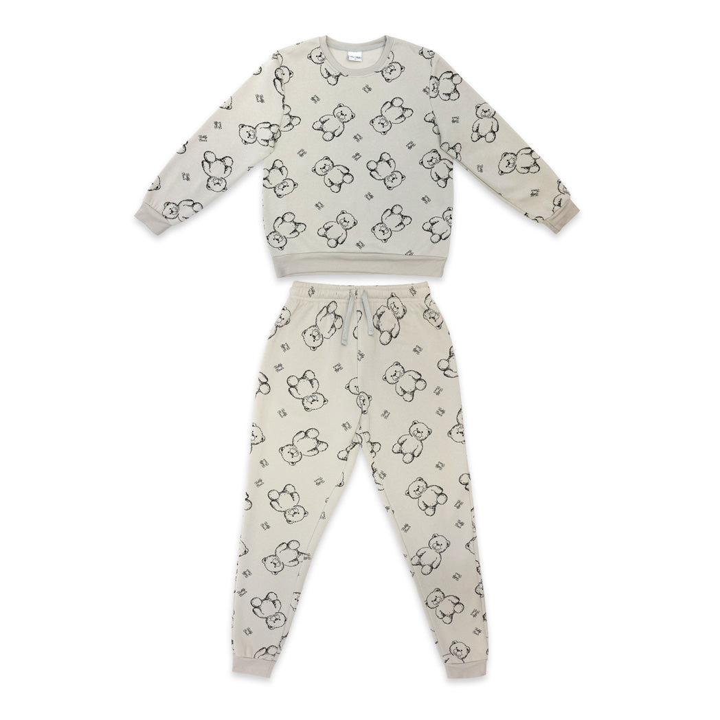 פיג'מת נשים בגוון אבן עם הדפס דובונים
