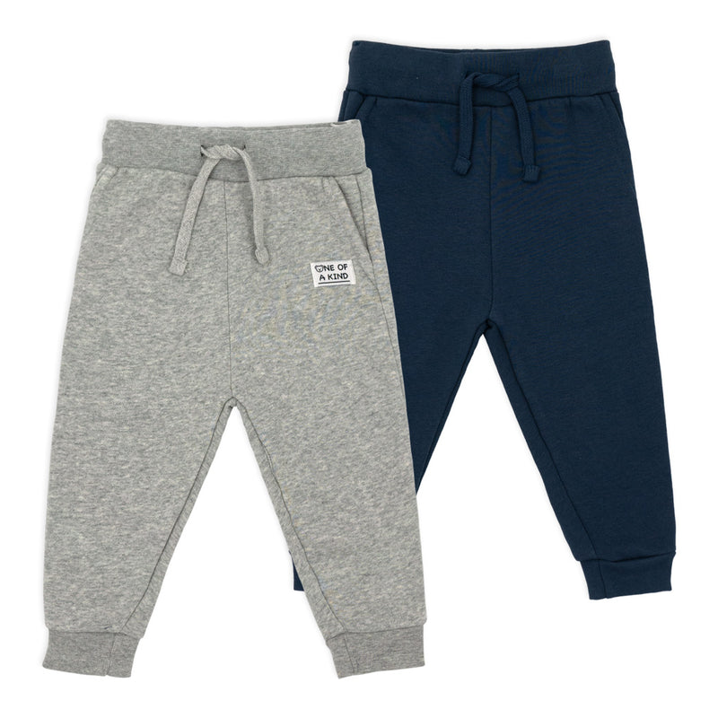 שני מכנסי תינוקות מבד פוטר חם בכחול ג'ינס ואפור מלאנז'