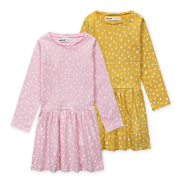 זוג שמלות מינוטי מודפסות לבבות תינוקות 12-24M