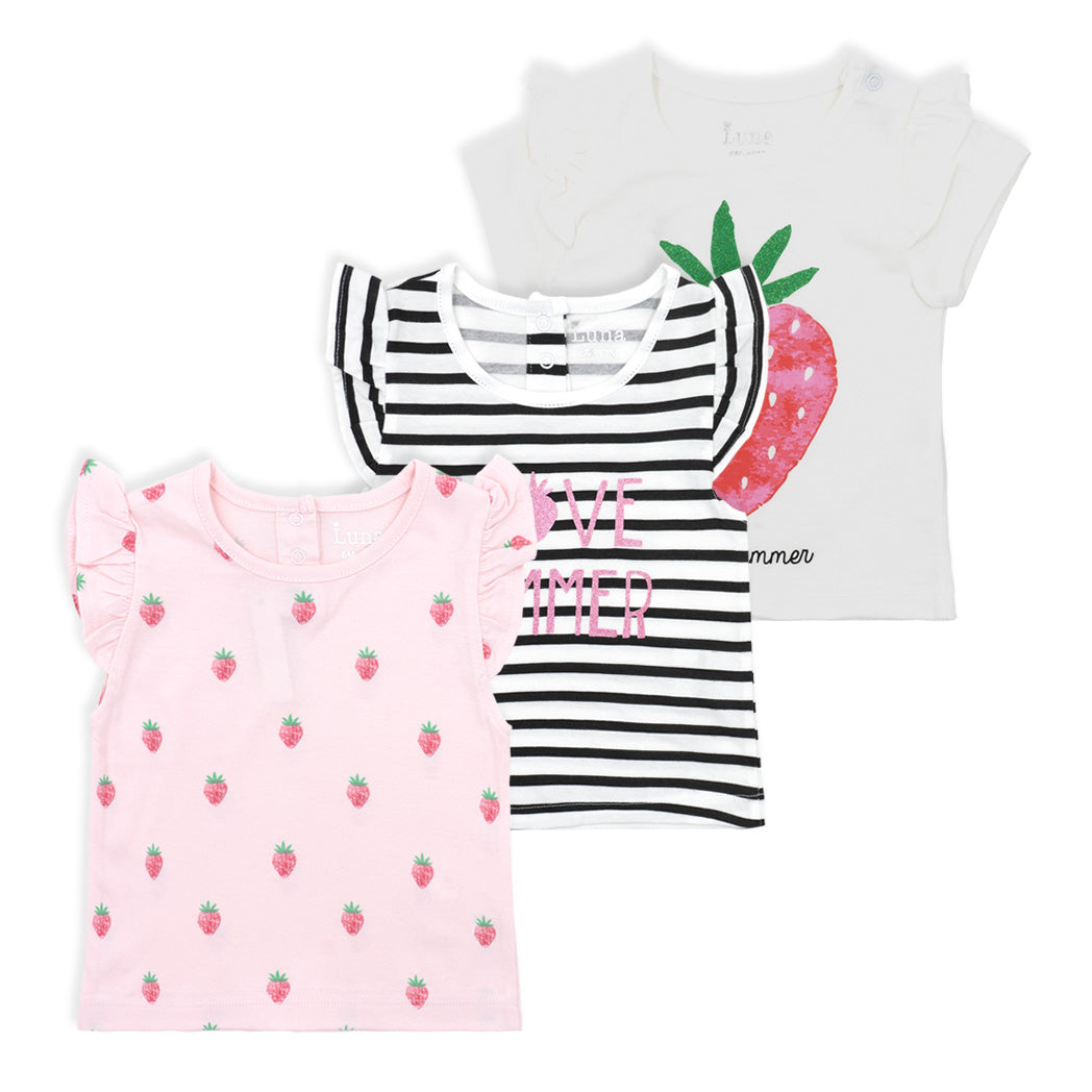 שלישיית חולצות תינוקת מודפסות - שתיים ללא שרוולים