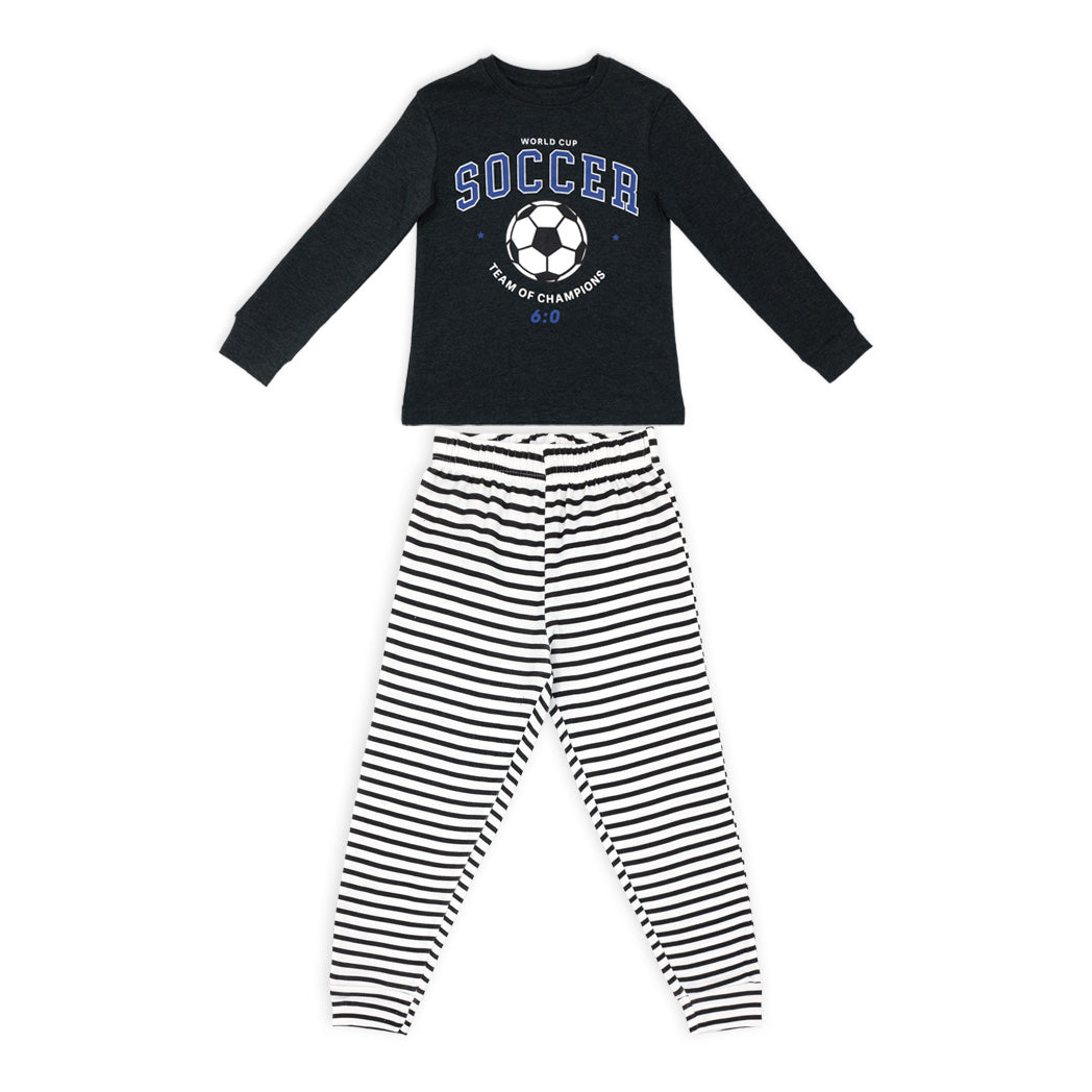 פיג'מה אינטרלוק דקה עם הדפס כדורגל