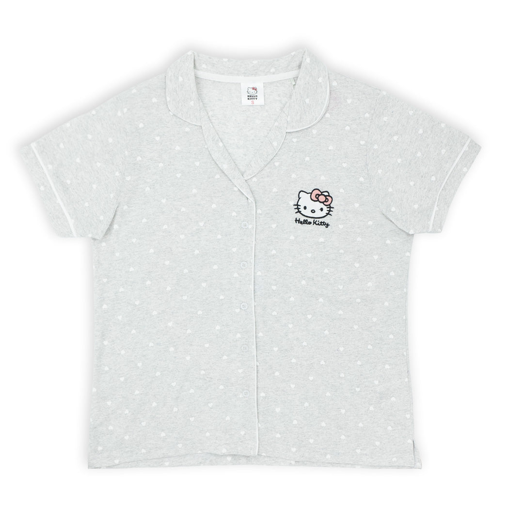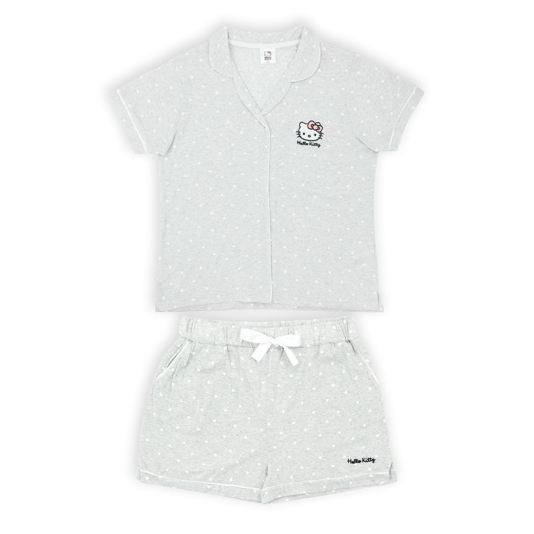 פיג'מת נשים קצרה בגוון אפור מלאנז' עם הדפס Hello Kitty אולאובר