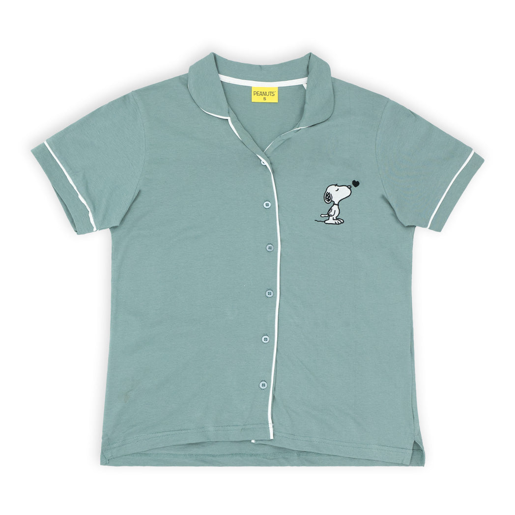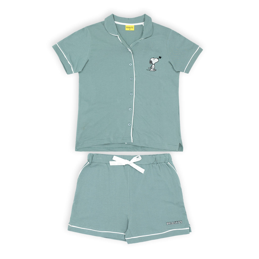 פיג'מת נשים קצרה בצבע מנטה עם רקמת סנופי