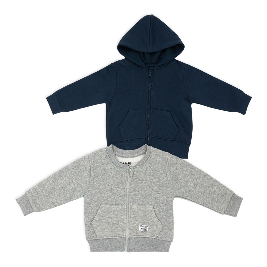 קפוצ'ון וסווטשירט לתינוק בכחול ג'ינס ואפור מלאנז'