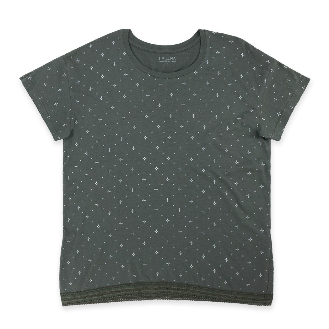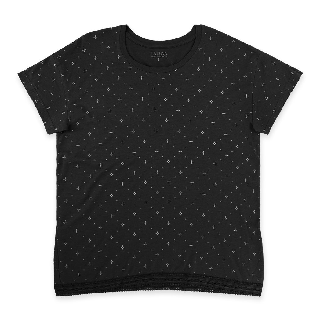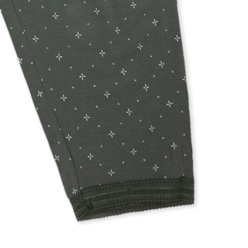 פיג'מת נשים מבד ריב דק ונעים עם מכנס ארוך ותחרה בשוליים, עם הדפס כוכביות אולאובר