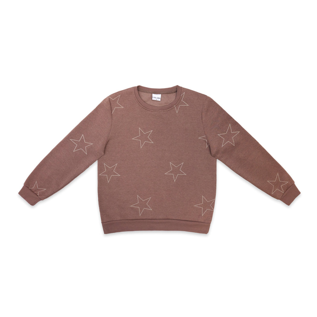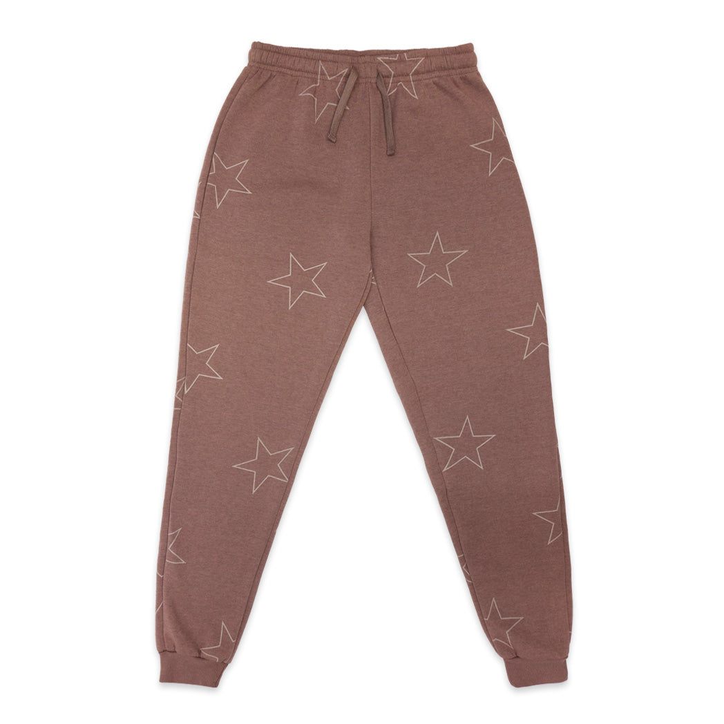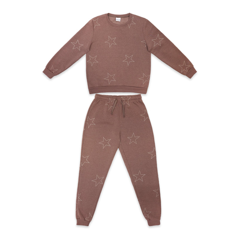 פיג'מת נשים בגוון פודרה כהה בהדפס כוכבים