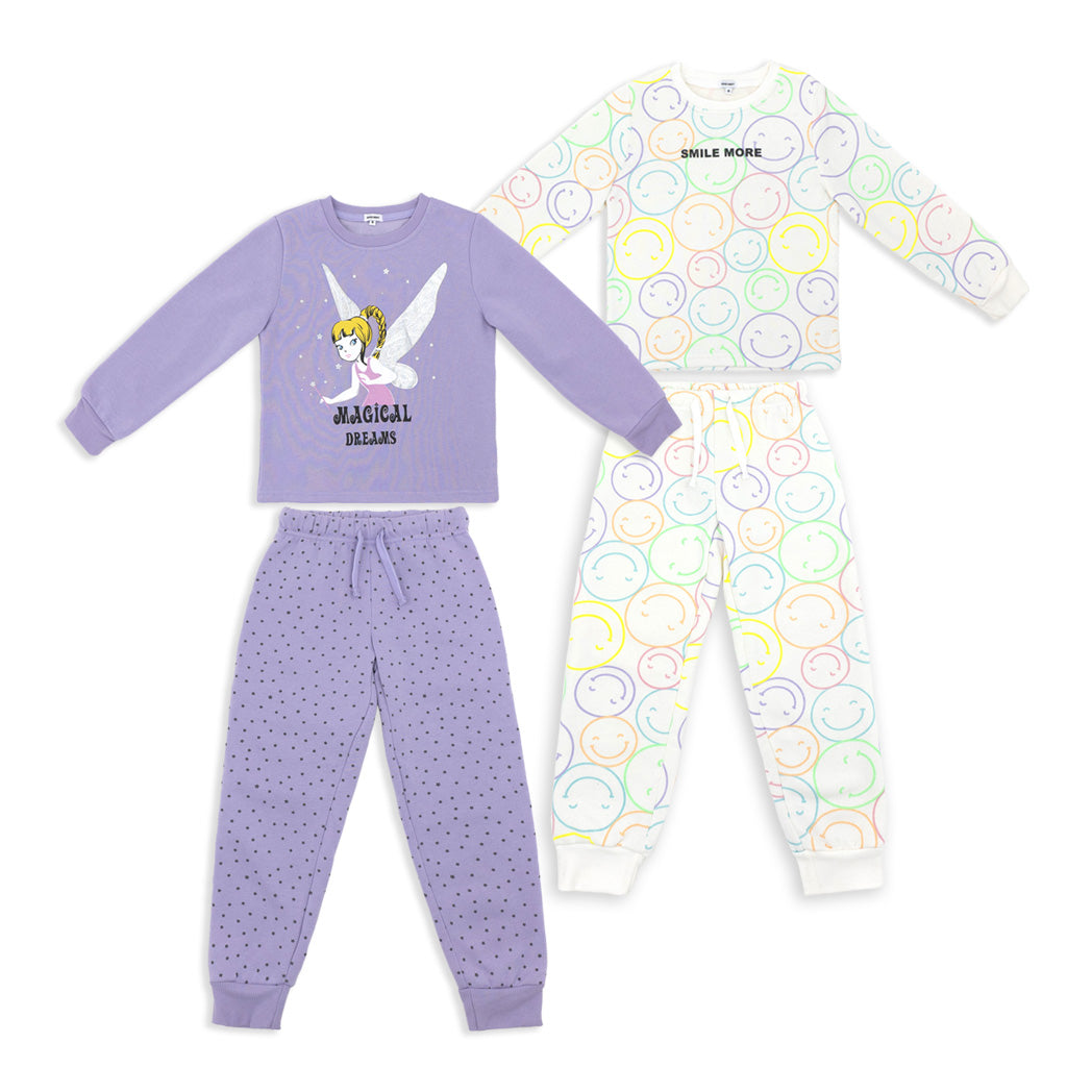 זוג פיג'מות פוטר מודפסות פיה וסמיילי בנות