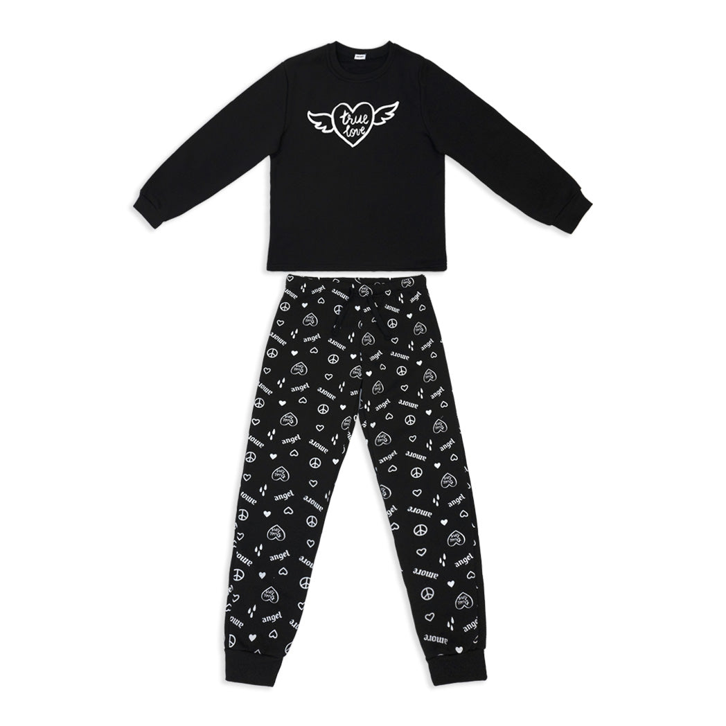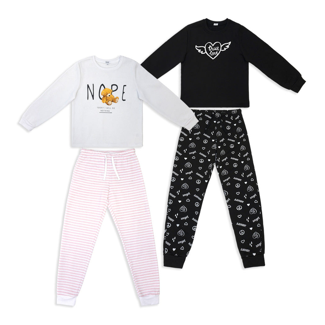 זוג פיג'מות פוטר מודפסות שחור לבן בנות
