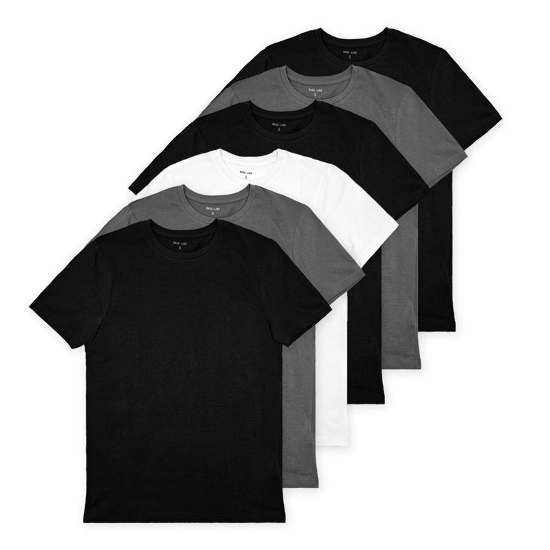 הסט בגוונים קבועים - שלוש חולצות שחורות, שתי אפורות ולבנה